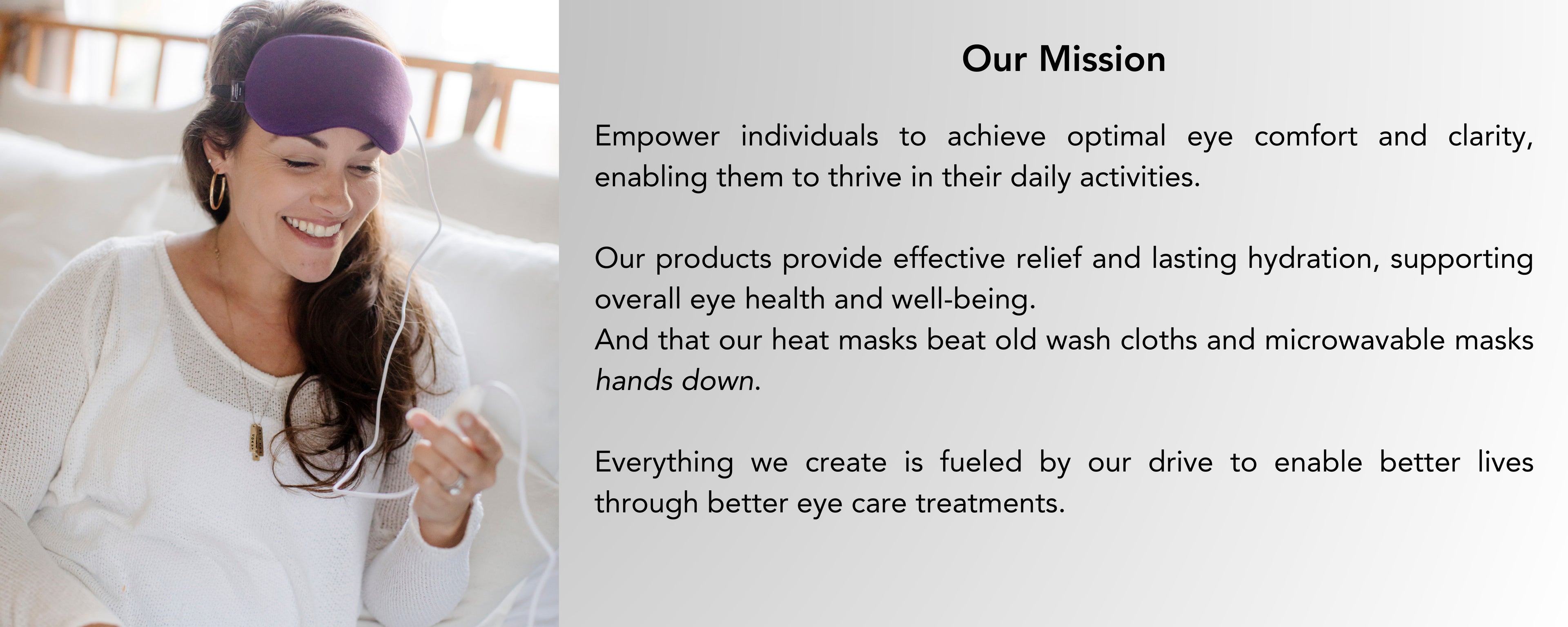 Our Comfylids Heated Eye Masks are designed to help soothe dry and tired eyes. Enjoy up to 60 minutes of relaxation and embrace the soothing warmth